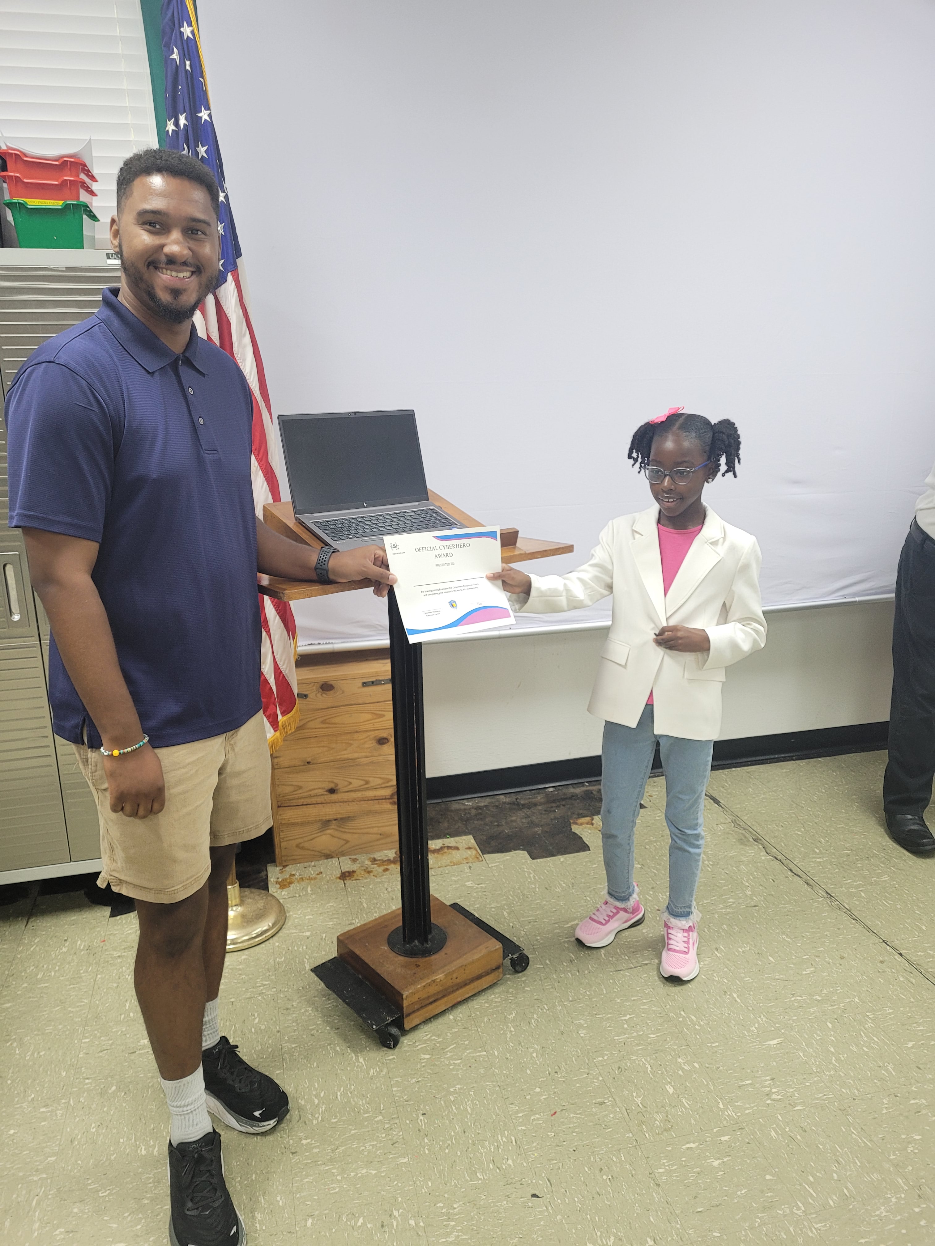 Then came one of my favorite moments of the day. Emani, standing tall in her white blazer, proud and pushing through her nerves, led the entire room in the CyberHero Pose. Campers stood up with her, bold and brave, and recited our pledge: